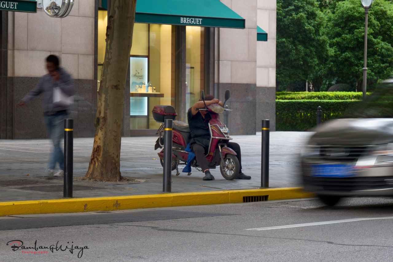 Tiired Sleeping on the motor in Shanghai city