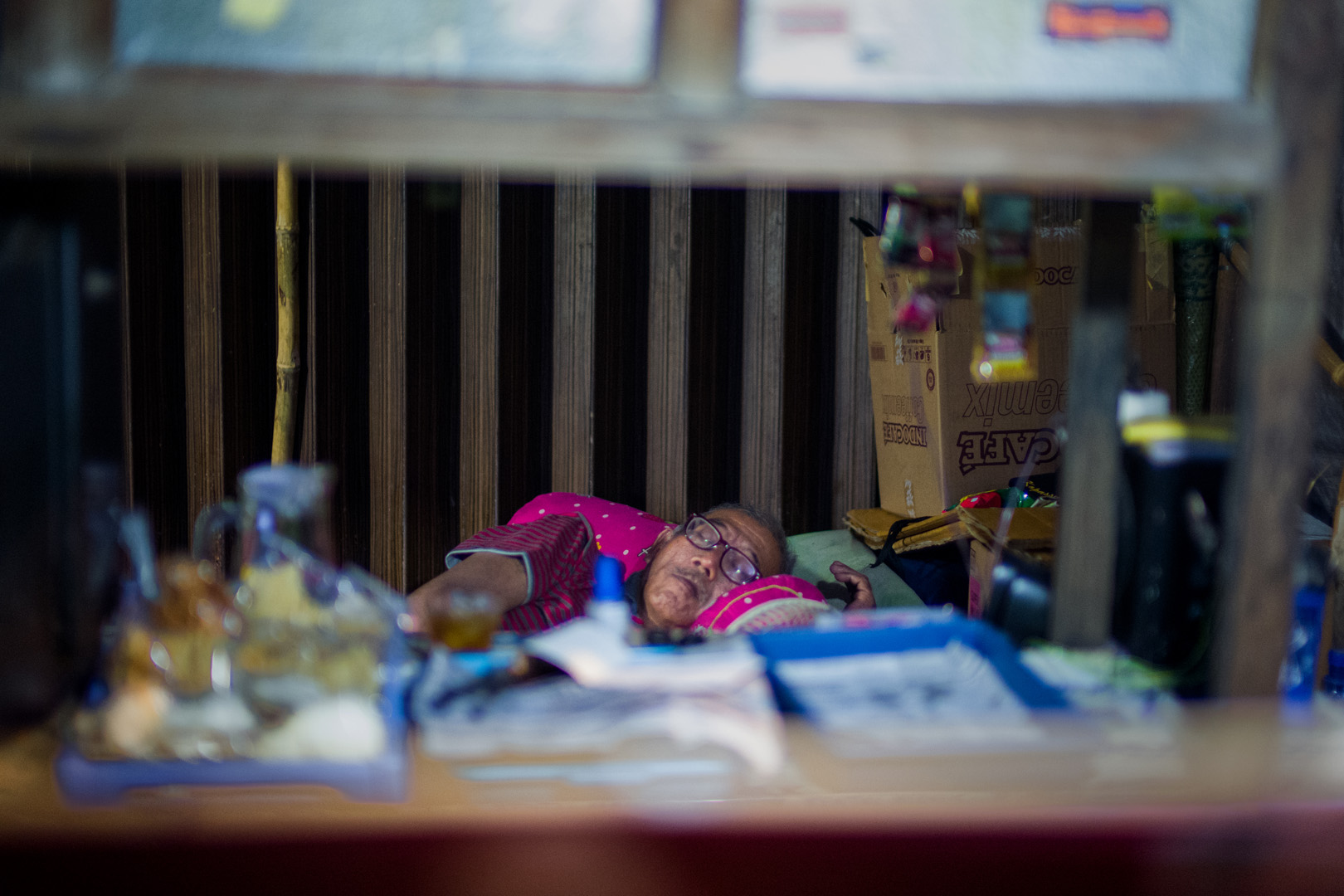 SLEEPING WHILE AWAITING CUSTOMER